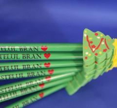 Creion HB "Namsos" de culoare verde cu radiera in forma de brad.